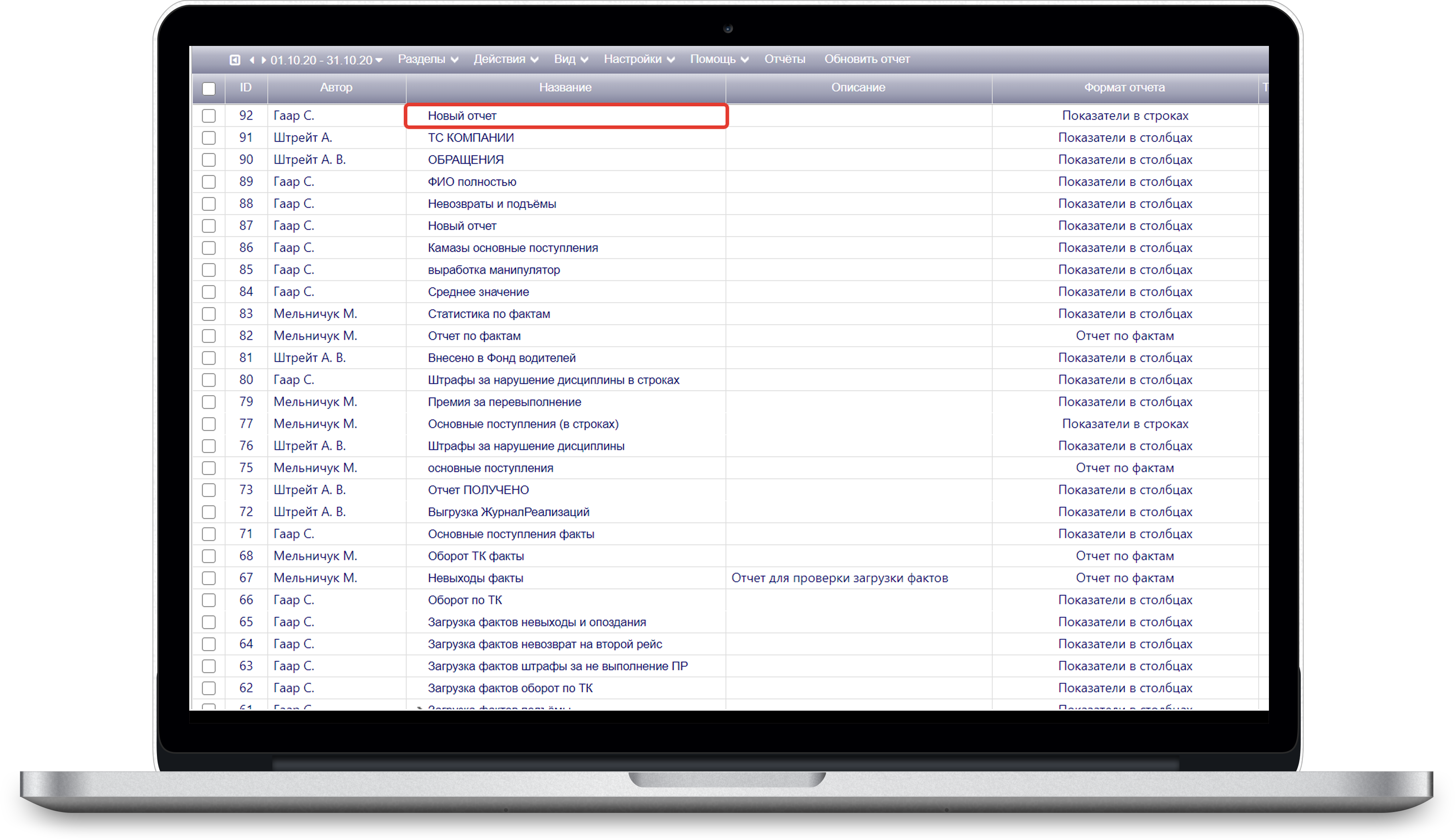 1. Проверка на ошибки при загрузке через карточку отчета.