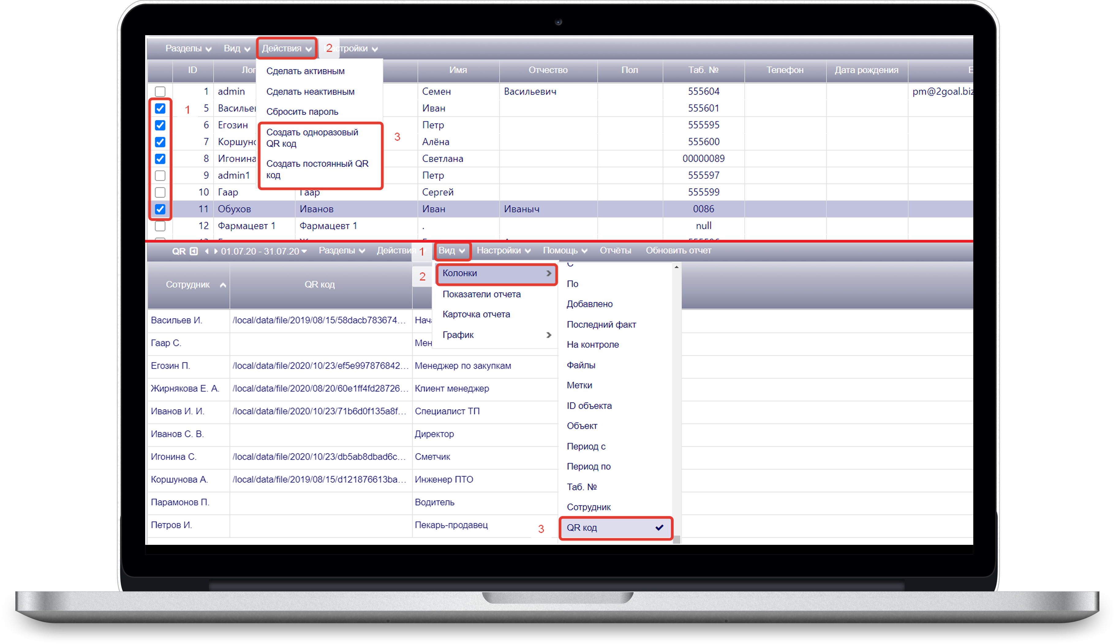 Рис. 6 - выбор сотрудников по чекбоксу.