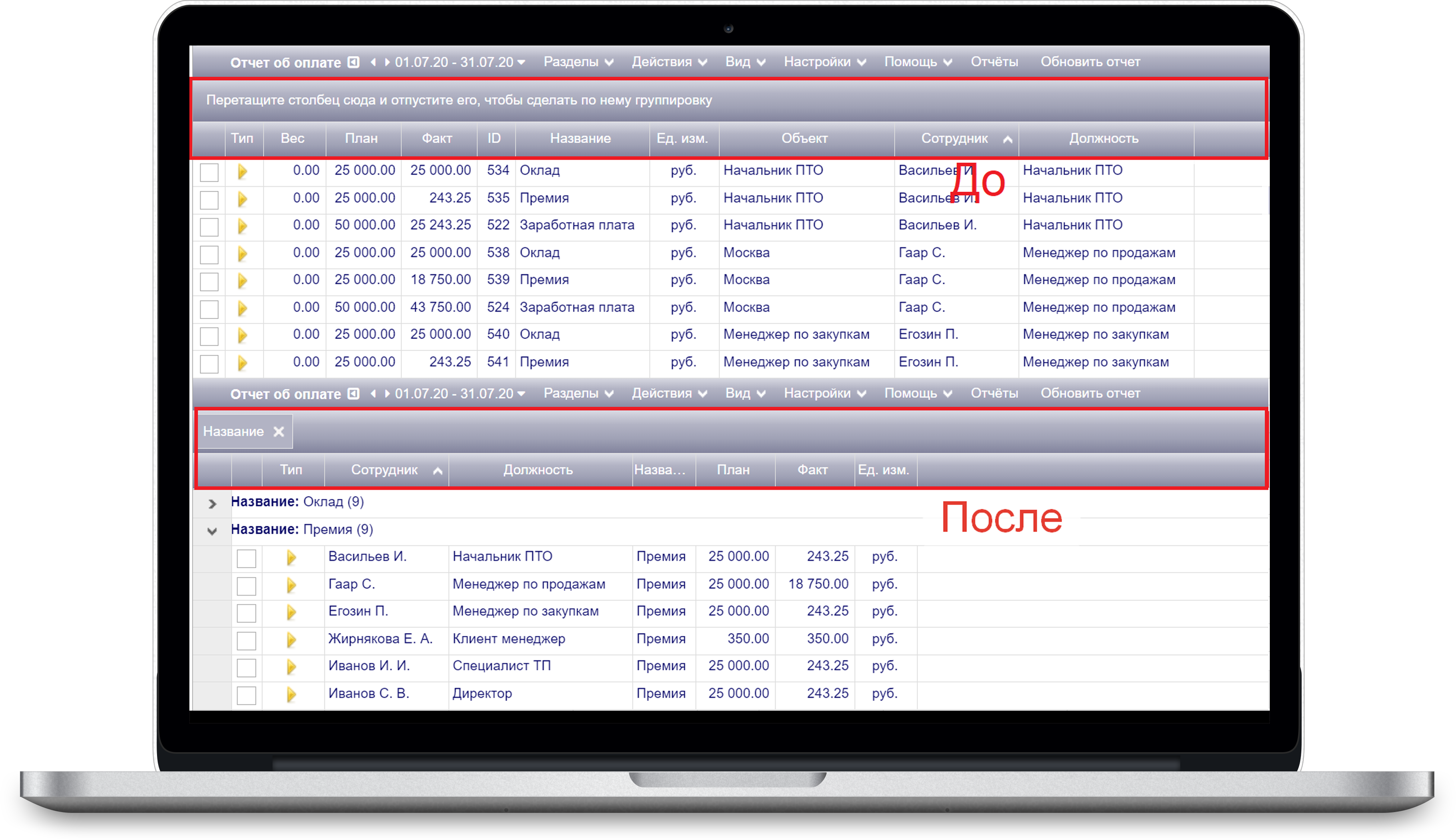 2.3. В оргструктуре доступны новые колонки «Оплата план» и «Оплата факт».