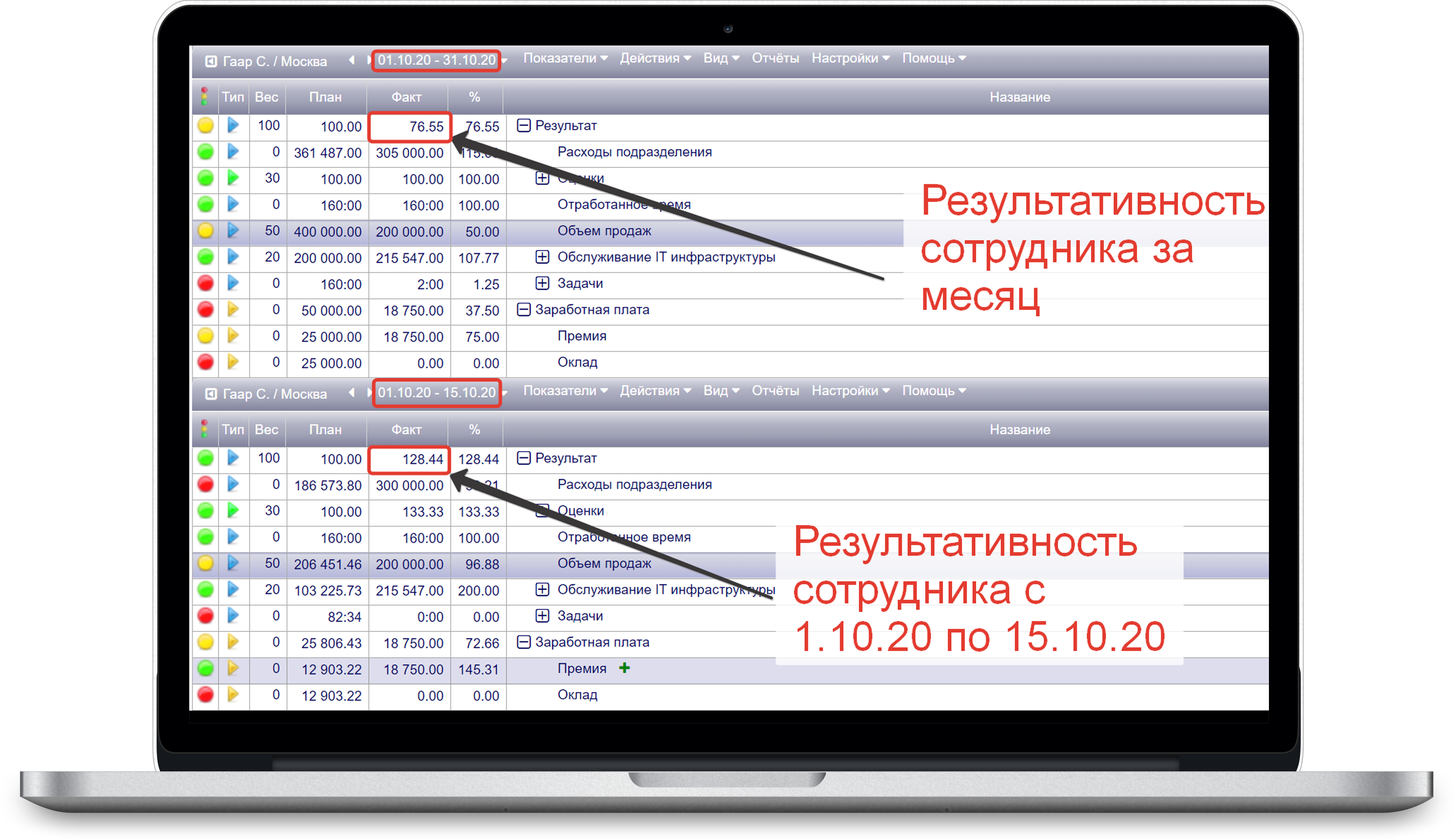 3. Доработаны карточки показателя и сотрудника.
