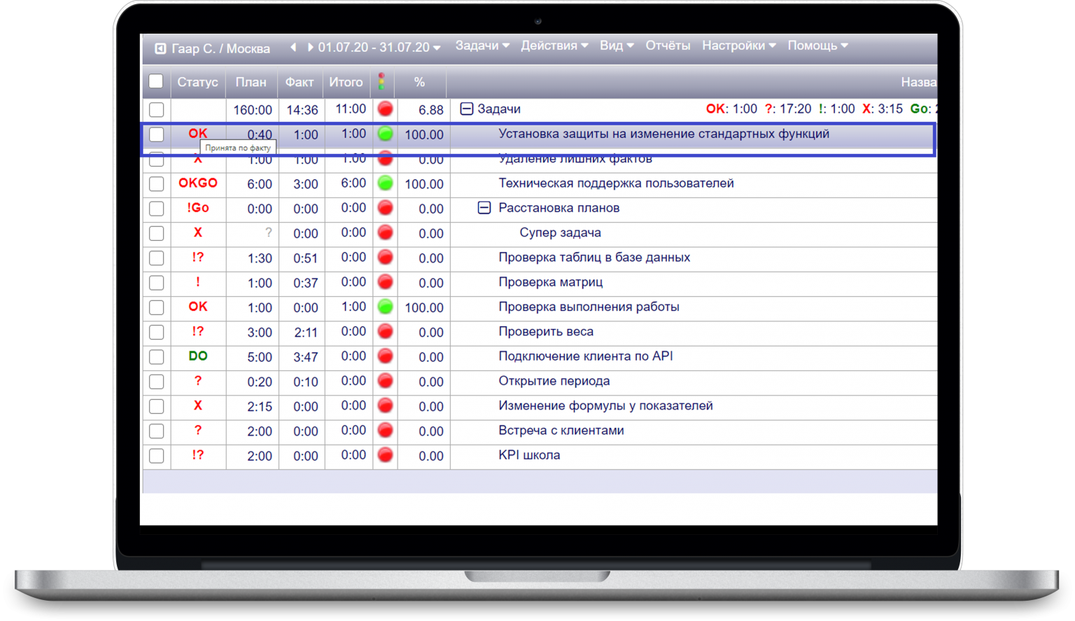 Рис. 2 - Статус OKGO в задачах.
