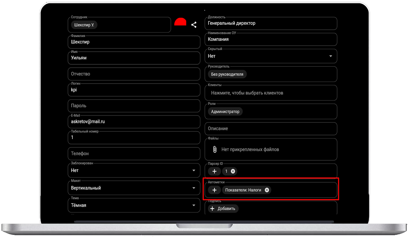 Инструменты пользователя